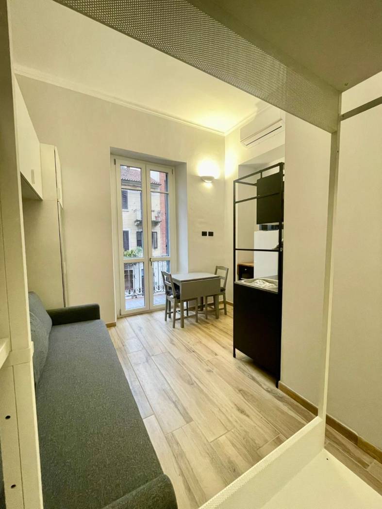 Disponibile da Gennaio 2026, a due passi dal campus e dal centro di Torino, si propone in locazione monolocale ristrutturato a nuovo (ultimazione cantiere dicembre 2025), finemente arredato, posto al piano primo di stabile in ordine nelle parti comuni. L'immobile viene consegnato completamente accessoriato: Infisso nuovo di ultima generazione con persiane nuove, cucina completa di accessori ed elettrodomestici (lavello, piano induzione, fornetto e frigo) ampia armadiatura e divano letto, zona studio con sedia e scrivania, tavolo con due sedie e bagno completo di sanitario, lavandino, doccia e lavatrice carica dall'alto nuova (molti dettagli sono in corso di ultimazione). L'immobile gode di un balconcino privato e la porta di ingresso è da scale (non è un ballatoio) ed è dotata di serratura con cilindro antieffrazione;